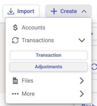 Manually-created accounts are not connected to a financial institution. Therefore, they are updated manually through transactions or adjustments in Neat.The ability to create transactions or adjustments will vary by the account type you create. For instance, a manually created bank account is available for both transactions and adjustments, but is limited to only one type of adjustment: Record a Transfer of Funds Between Accounts; while a Vehicle account is not available for transactions at all but is available specifically for two adjustments: Adjust an Asset's Current Value and Record Depreciation/Amortization.
