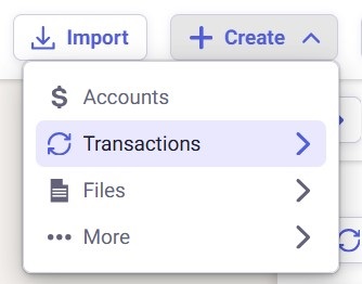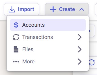 - Click the +Create button at the top right in Neat. Then click Accounts.