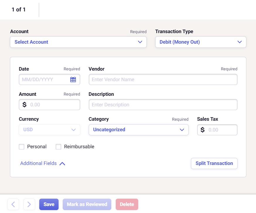 Note: There are four required fields: Date, Vendor, Amount, and Category.