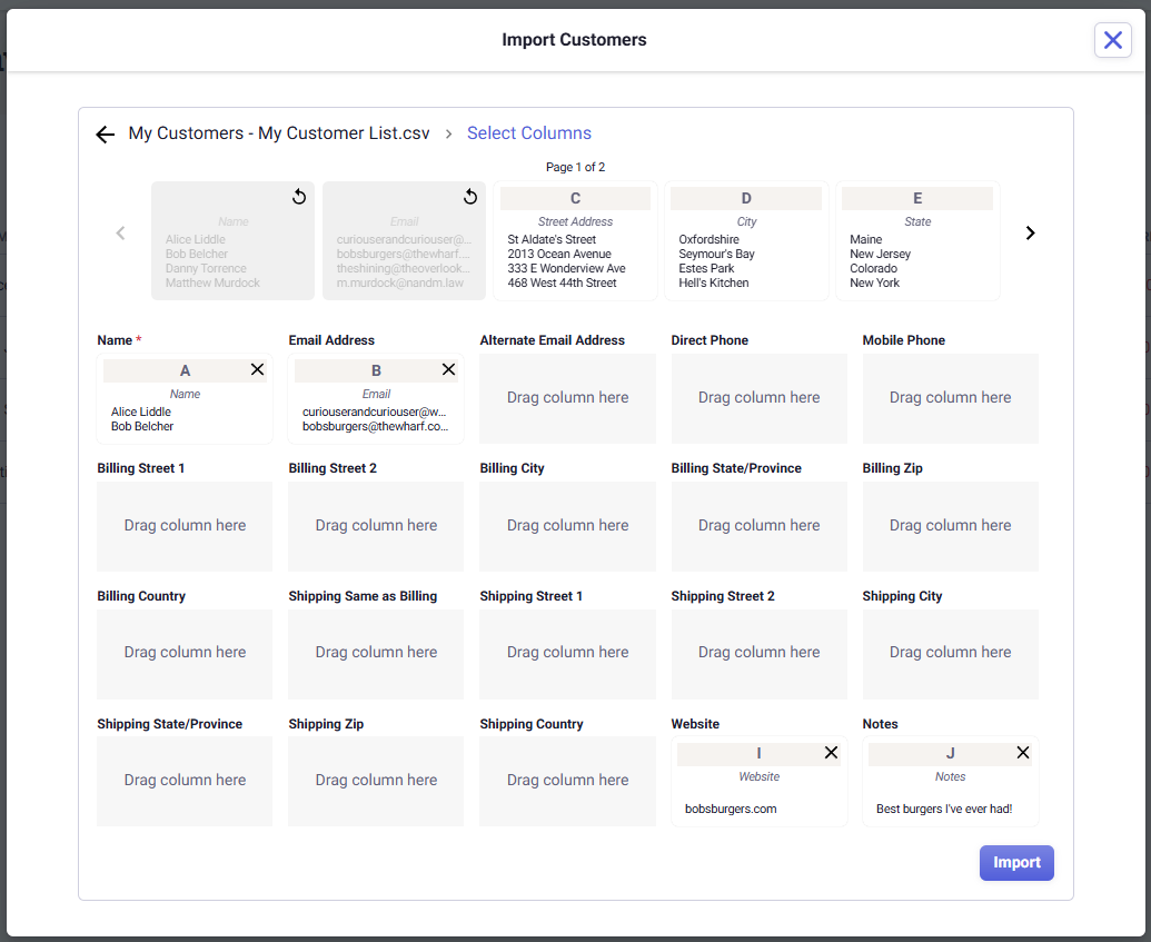 - Drag and drop your list into the box, or browse to and select your CSV list of customers to import.