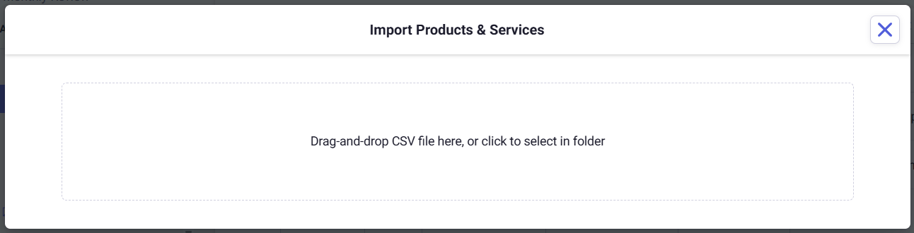 - Drag and drop your list into the box, or browse to and select your CSV list of products & services to import.