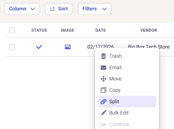 Sometimes a single purchase covers more than one type of expense, and that’s where receipt splitting comes in handy. Splitting a receipt allows you to divide one receipt into multiple files, each with its own category, amount, or project.You might want to split a receipt when: