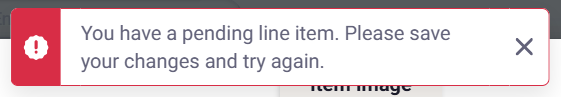 Please Note: If you click the Save button at the bottom left-hand corner of the transaction window instead of Save directly under the line item, you will get an error message stating you have a pending line item.