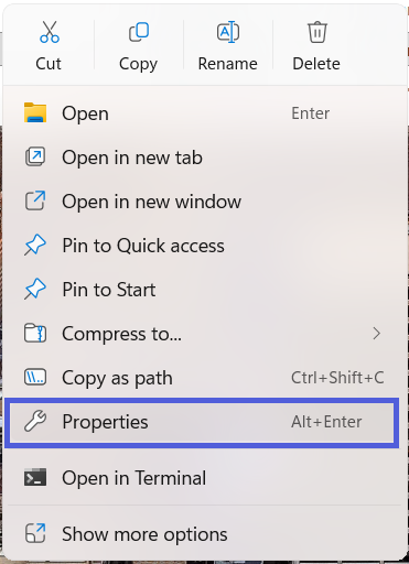 - Right-click on a folder that you want to add permissions to and choose Properties: